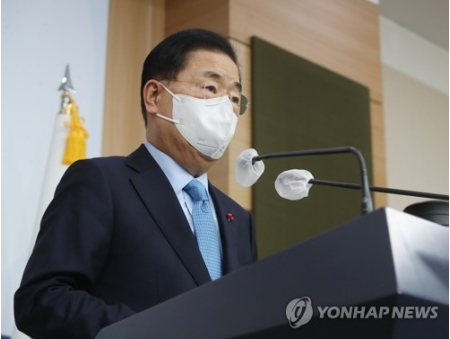 韓国の鄭義溶(チョン・ウィヨン)外交部長官は29日の記者会見で、朝鮮戦争の終戦宣言の文言について、米国と「すでに事実上合意している状態」と明らかにした。