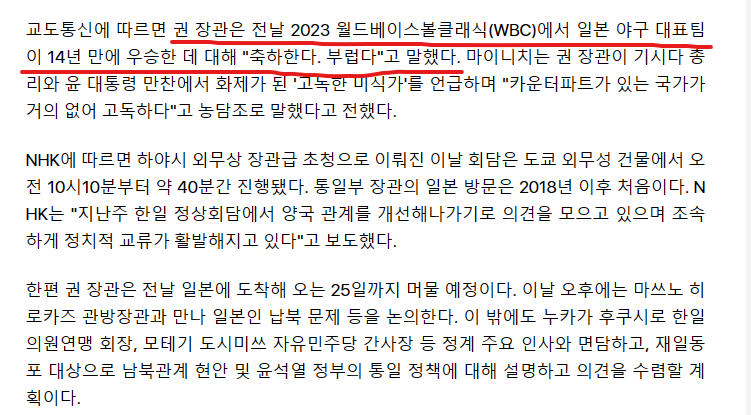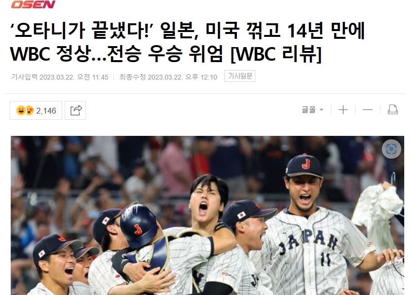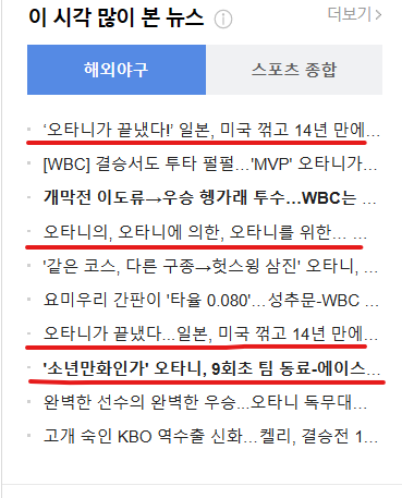 その日本に興味がある韓国は、日本のWBC優勝の記事のニュースが流れたんでしょう?(笑)