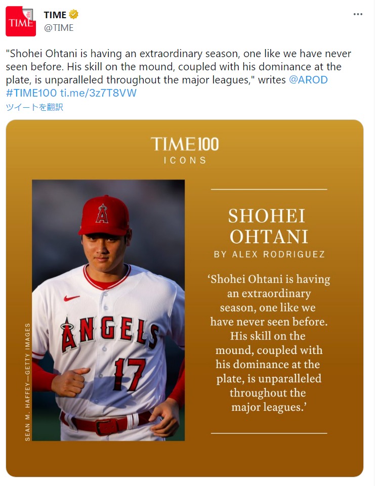 何でこいつらはいつも有名選手の名前を盗用するのか2021年にTime's 100 に選出されている大谷翔平