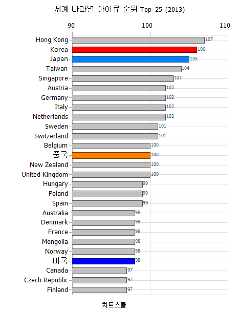 지능지수(IQ)는 한국이 일본보다 높지만,