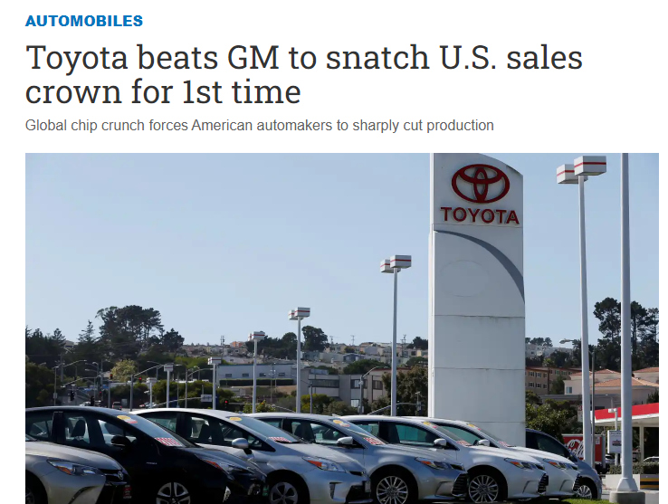 ★トヨタが初の首位=90年トップのGM上回る―21年の米新車販売