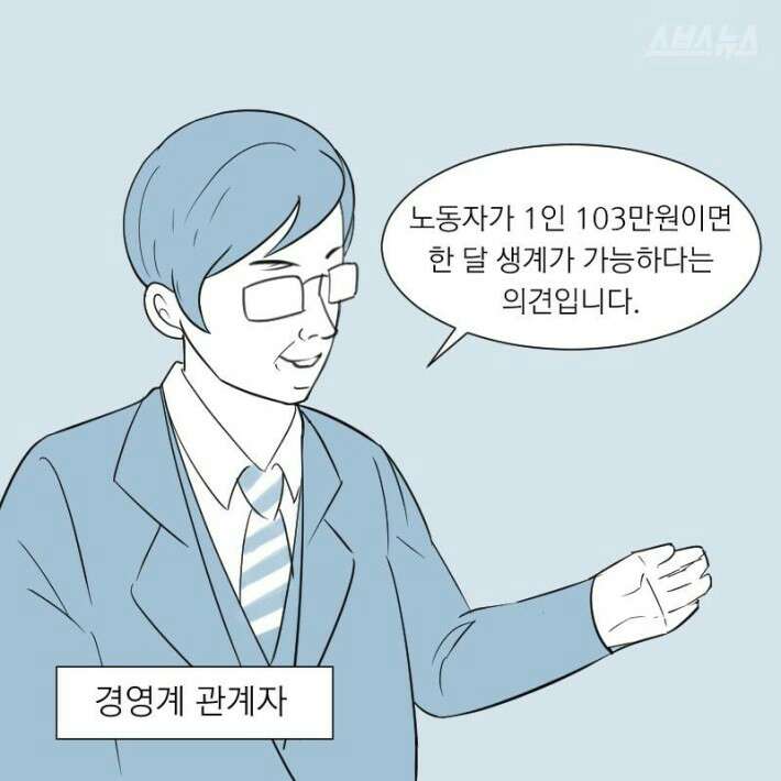 노동자가 1인 103만원은 한달 생계가 가능하다는 의견입니다.