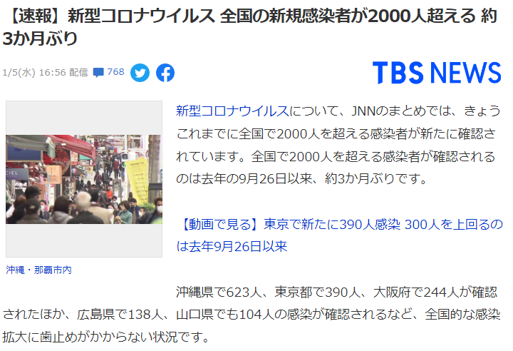 現在日本全国で人工呼吸器が必要な重症患者の受け入れ可能なベッドは2133床、患者は1月5日で68人。これから増えると思いますが、なんとか乗りきってもらいたいです。