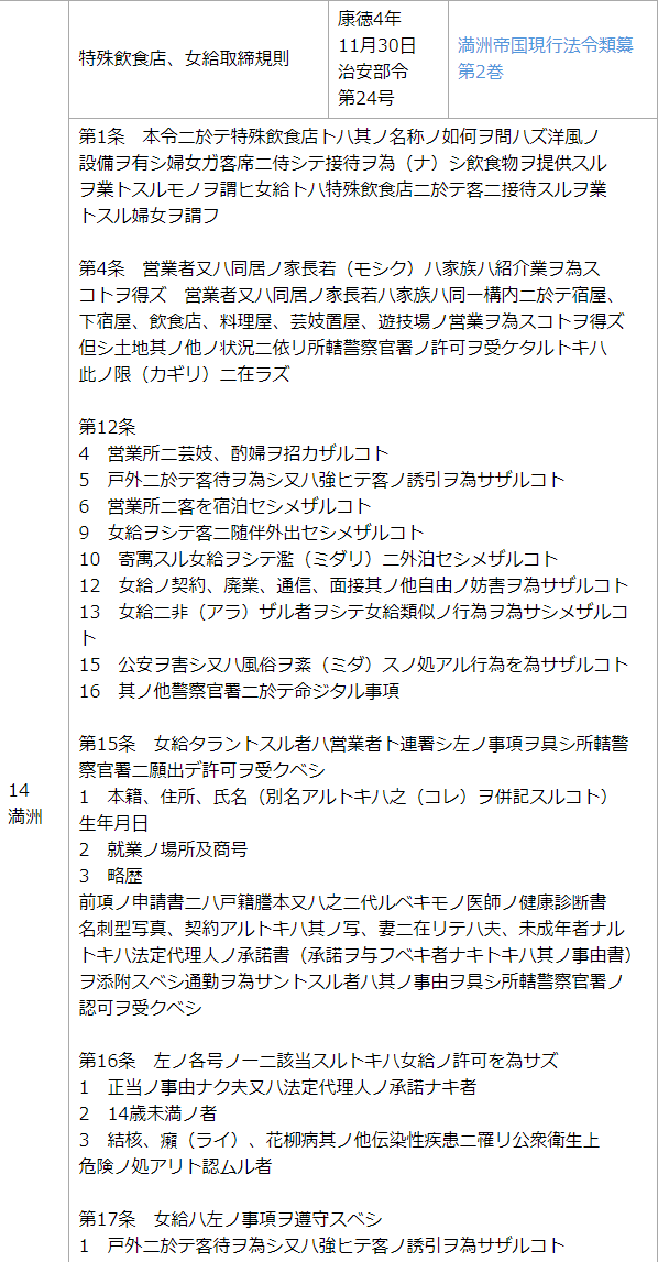 慰安婦(公娼)を保護した法律・規則・通牒一覧