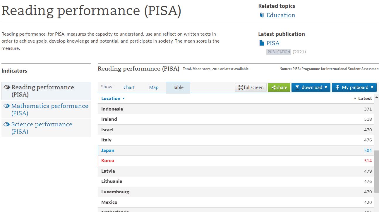 受験地獄の韓国では、学生の読解力は、まあまあ高い。