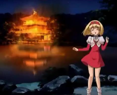 炎上する金閣寺や国会議事堂の前で笑顔で踊る