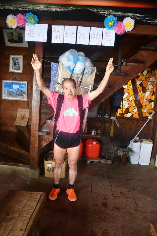 写真1枚目は畠山良巳さん(68歳)。去年、塔ノ岳7,000回登頂記念の1枚