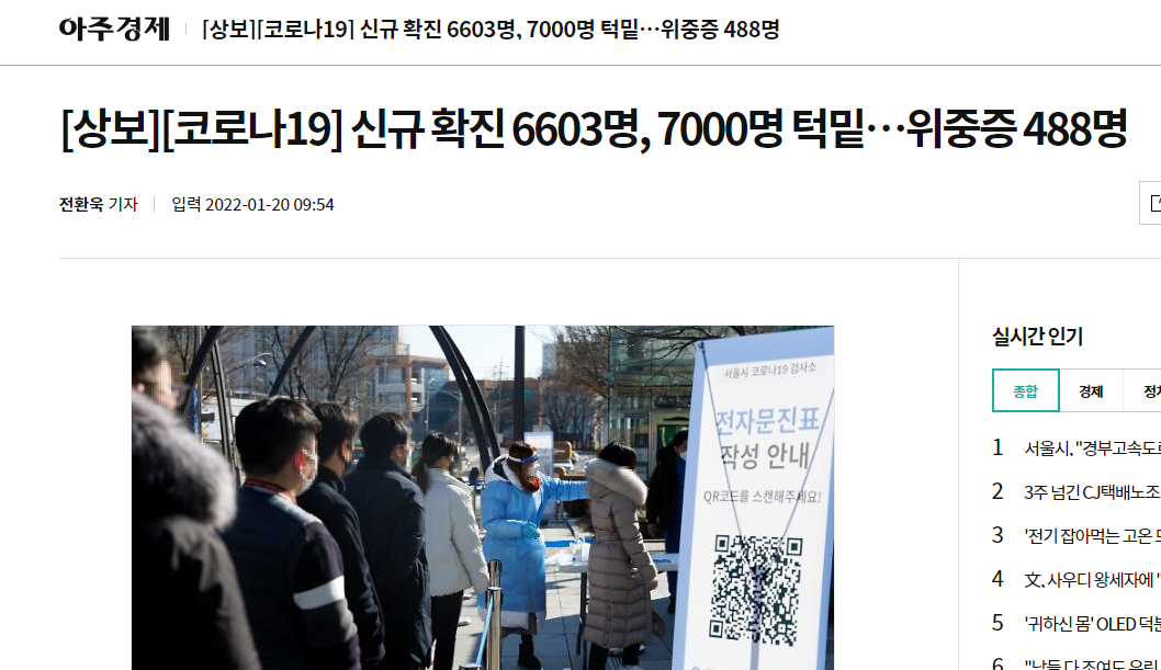 オミクロン株が広がり、感染者が急増している。隣国・日本のようにオミクロン株が大流行するのは時間の問題だという見方もある。18日の韓国における新型コロナ一日新規感染者数は5805人で、前日に比べ約1700人増えた。5000人台の感染者は先月29日以来、約20日ぶりだ。防疫当局ではオミクロン株が本格化したと見なす基準を感染者5000人の時点としていたが、18日にこの基準に達したものだ。19日には状況がさらに深刻になった。同日は雪と寒さの影響で新型コロナ検査者数がやや減ったものと推定されるが、午後10時現在の感染者は5400人余りで、前日の同時間帯に比べ約300人多く、最終的には6000人台を記録する可能性がある。