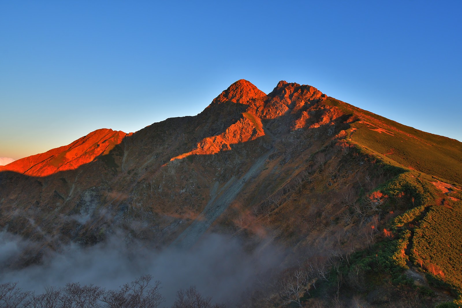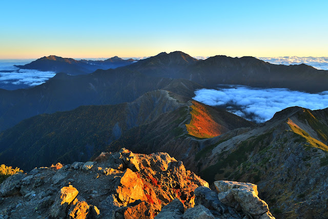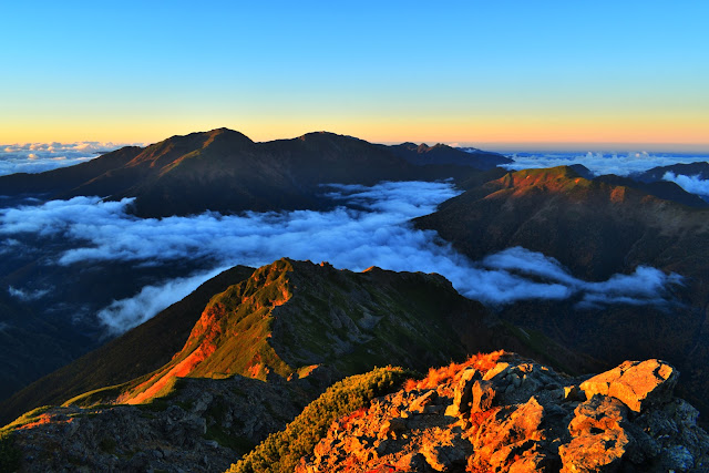 塩見岳の山頂から見る雲海とモルゲンロートは、北アルプスの槍ヶ岳山頂から見るそれにも匹敵します