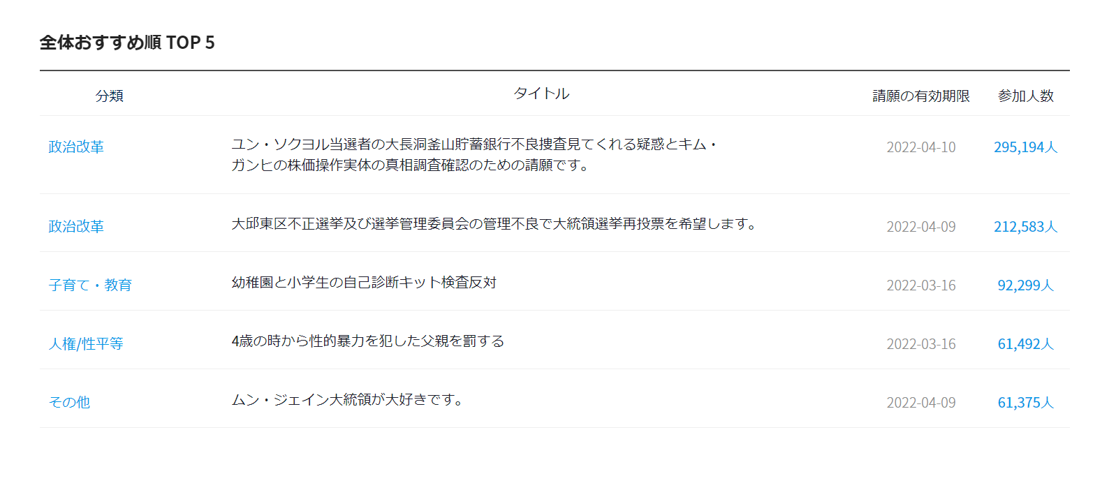 以前にBTS解散要求に関する請願があったな