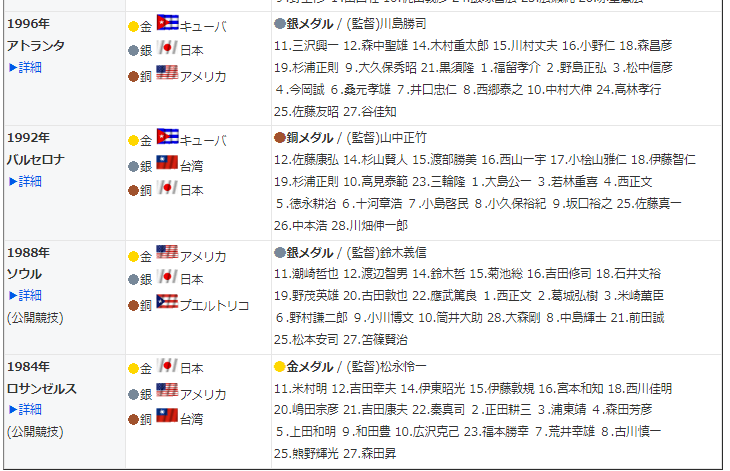 1996 アトランタ・・日本(銀メダル) > 韓国(予選リーグ敗退)