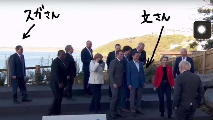 首脳級の国際会議では写真撮影でも一定のルールに基づいて並ぶの、スガチャンは総理経験が浅いから二列目。で、お前らの酋長は左側の公式写真に入っているかい?。右の写真は撮影後に朝鮮人の酋長ズカズカ割り込んできたんだろ。