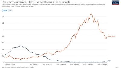 今日現在の重症者は424人しかいないけど。死亡率が高いデルタ株ですら、年1万人は通常のインフルエンザ死者数と同じで、ピーク時に1日100人以上死亡しても、インフルエンザのピーク時と同じ、オミクロン株はただのインフルエンザと同じかそれ以下、それとコロナウイルスの特徴で、急激に上がったら急激にピークアウトして下がるのが特徴。