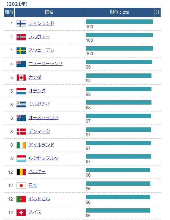 (国名あとの数字は 2020,2019年の順位)