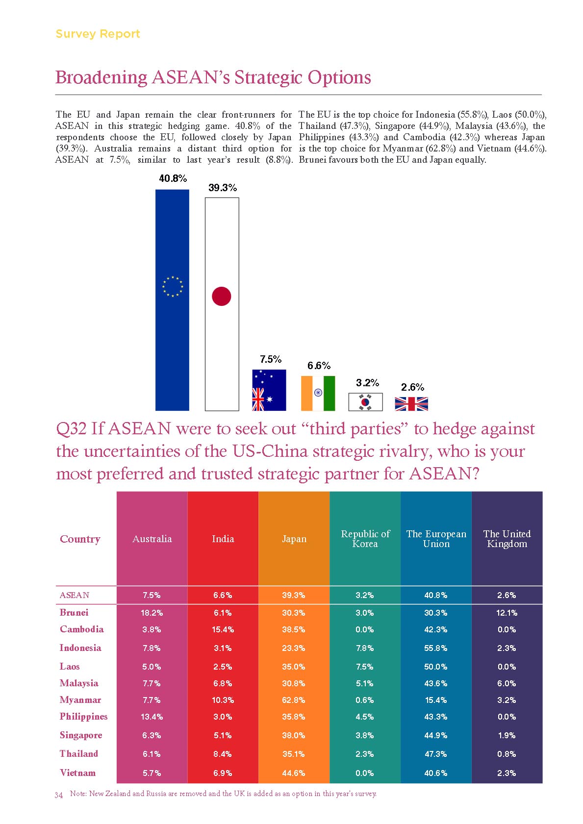Q32 米中戦略的ライバル関係の不確実性に対抗するため、ASEANが「第三者」を模索するとしたら、ASEANにとって最も好まれる信頼できる戦略パートナーは誰ですか?