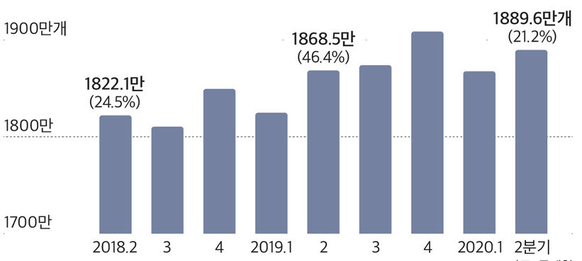 5년으로 전체 통계를 내면 일자리가 늘어서 그렇다고