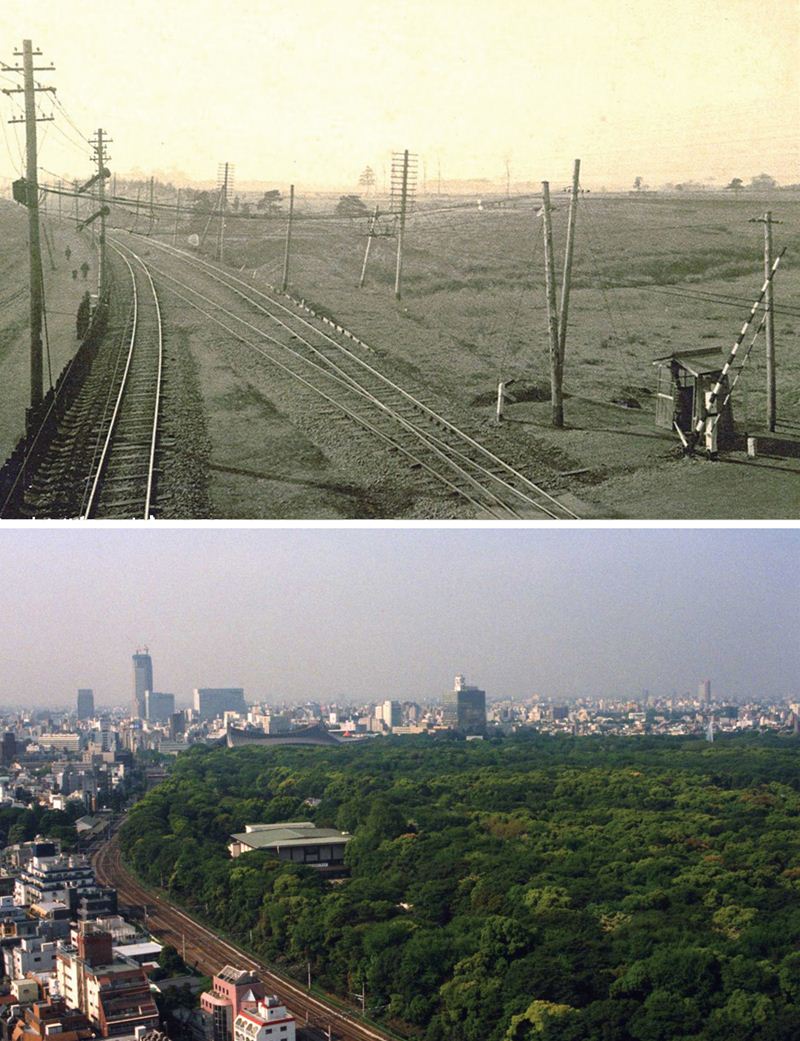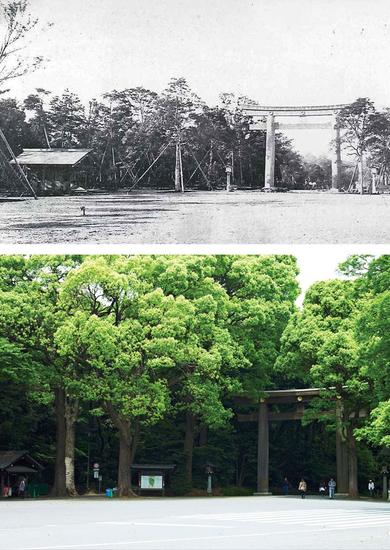 古来、日本では巨木や深い森に覆われた山は信仰の対象となってきた。社殿が造られるようになってからも、神の鎮まるところを囲む森は「鎮守の杜」と呼ばれている。明治神宮の境内に茂る木々も、こうした鎮守の杜として残されてきた原生林のように見えるが、意外なことに、この森は「人が造った森」だ。