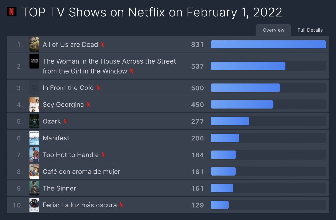 誰も信じないよ。ネトフリって、最近は愛の不時着がランキング上位に居座ってるんだぜ。