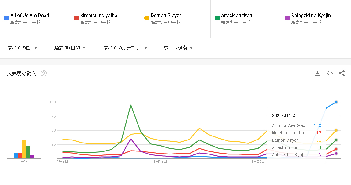 あれっ? 今度はなぜか『今、私たちの学校は...(All of Us Are Dead)』が突出しています。