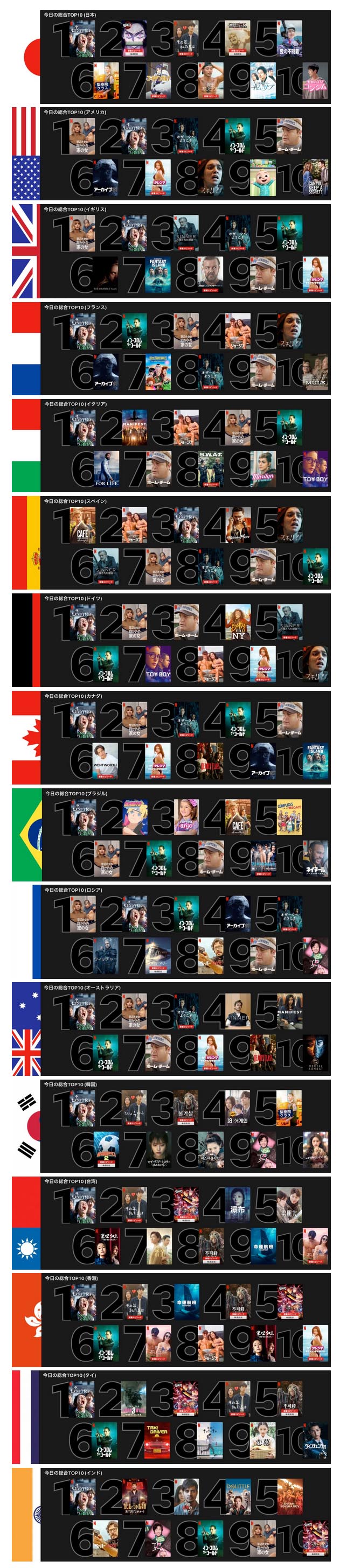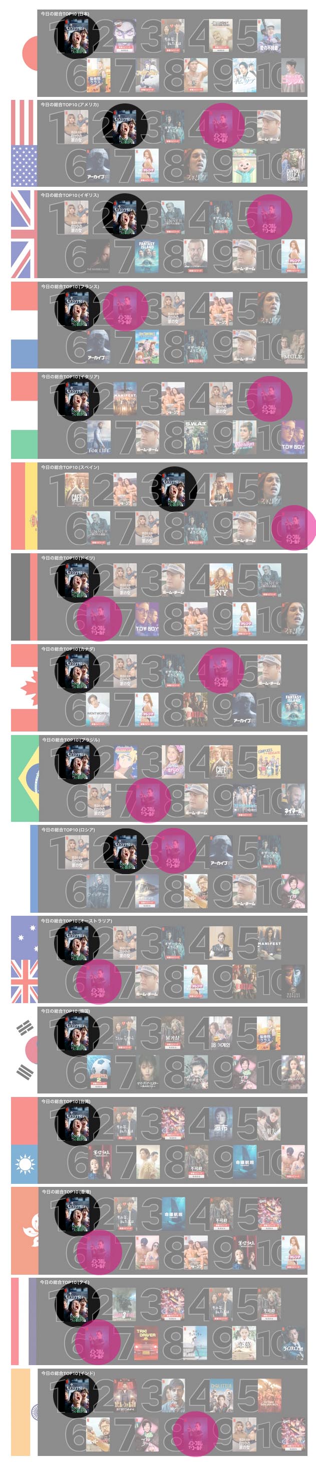 判りやすいですね。これが本日のNetflixランキング。