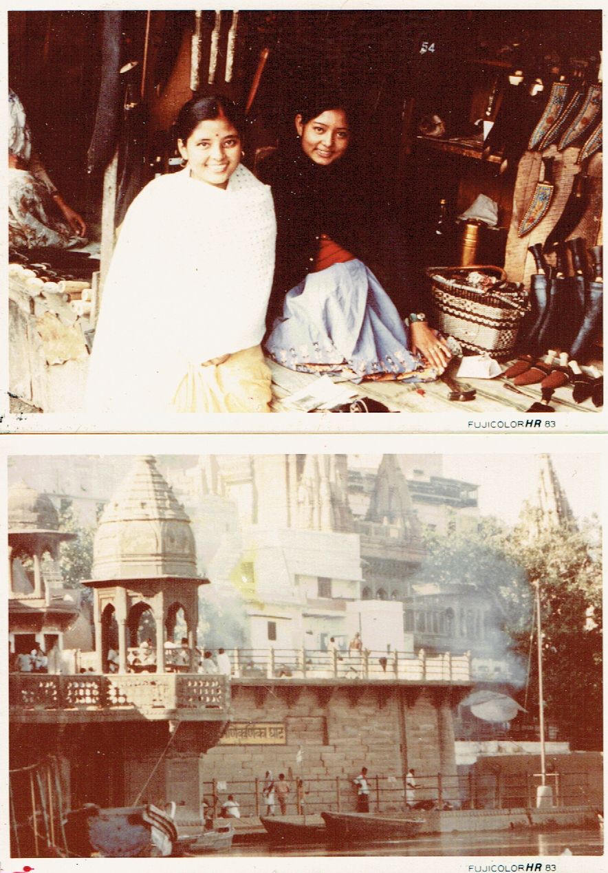 さて続きを、当時の飛行機は小さいうえに、今の気象レーダなどないので急な乱気流など回避できません、この時も最後部の天井パネルが落ちてきましたし、なんのアナウンスもなく食事中に、カルカッタ空港に着陸しみんなで悲鳴を上げました。日本の風習の源流がインドから一部来ている感じが有ります。カルカッタ(今はコルカタ)の寺院での結婚式で牛の角を夫婦で握り、聖像の周りを3回ずつ3回回る、三三九度かと・・。時間がゆっくり流れている感じが有りました、田舎の食堂で軽い食事を頼んだのですが、用意できたのが2時間後、長距離寝台列車も乗ったのですが、遅れるのが当たり前、笑い話で「定時に来たじゃないか」「あれは昨日の列車です」・・。インドの国民宿舎の様な物に泊まったのですが当時の価格で1泊2食付きで80円、日本に帰った後とんでもなくケチになりました。暑さは大変で、緩い長そでが必要です。露出した皮膚はやけどすることも有ります。汗をかかずに塩を吹くのを経験しました。今はどうか判りませんが、8月15日は日本人だと判ると食事などはおごってくれました。これは太平洋戦争で日本軍に協力した「自由インド軍」の軍事法廷に対する暴動が一つのきっかけとしてイギリスが手を引いたと思っているようです。インド独立記念日も8月15日です。写真はダージリンのナイフ屋さんの姉妹と、下はベナレス(今はバラナシ)のガンジス川に面した火葬場、この対岸は荒野で「彼岸」になります。インド編3
