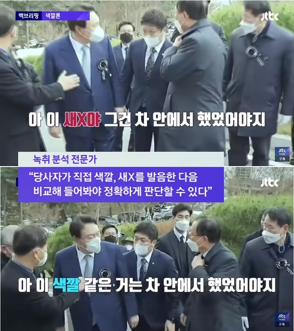 윤 대통령은 대선 후보 시절인 지난해 11월 22일 서울 동작구 국립서울현충원 내 김영삼 전 대통령 추모식에 가던 중 착용한 넥타이 색깔이 검정색이 아닌 사실을 뒤늦게 알아차리고 수행비서에게 "야 이 XX야, 그건 차 안에서 (준비)했어야지"라고 버럭 화를 내는 장면이 포착된 바 있다.- 262