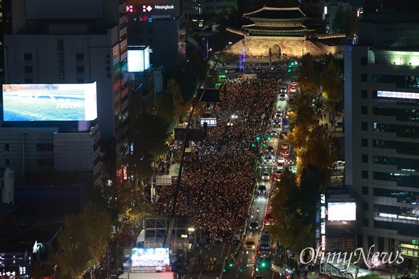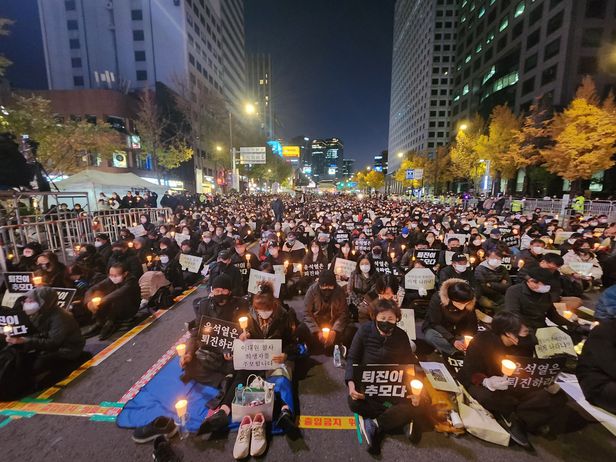 352명의 사상자를 낸 이태원 핼러윈 참사를 추모하기 위한 집회가 5일 오후 서울 시청광장 근처에서 열렸다. 이날 오후 5시쯤 촛불승리전환행동(촛불행동)은 4개 차로를 차지하고 2시간 동안 ‘이태원 참사 희생자 추모 촛불’ 집회를 열었다. 주최측은 오후 6시 기준 5만명이 모였다고 했지만, 경찰은 9000명으로 추산했다.