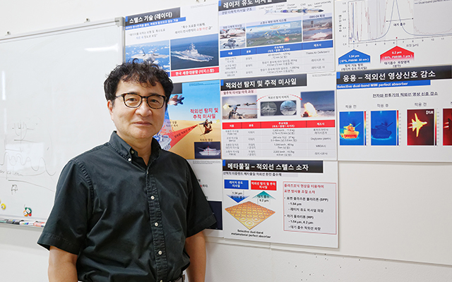 본 연구의 스텔스 소재는 플라즈모닉 메타물질 구조를 이용해 해당 레이저 광을 완전히 흡수하는 표면을 제작함으로써 미사일을 유도하는 산란광의 발생을 억제한다. 적외선 열영상 추적 미사일은 물체 표면에서 방출되는 적외선을 감지해 표적을 추적한다. 또한 마이크로, 나노 금속 구조를 활용해 표적에서 방출되는 특정 적외선 분광을 최대한 억제해 검출기에 탐지되는 신호를 대폭 줄일 수 있다. 게다가 본 연구에서 개발한 스텔스 소재는 유도무기에 활용되고 있는 밀리미터파 레이더 파장을 흡수할 수 있다. 즉, 레이저, 적외선, 레이더에 대해 모두 스텔스 능력을 갖추고 있다는 것이다.