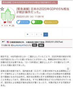 11名無し2022/02/08(Tue) 23:31:51ID:YwODI3Njg(1/1)NG報告>>10偉大な韓国人である貴方に、質問があります。どうか愚かな日本人の私に教えて下さい。以前の貴方の主張の要約↓日本のGDP約520兆円のうち4兆円は統計操作である。これは、GDP全体的のうちの5%にあたる。下の図参照↑何故 ???愚かな日本人である私には、韓国の偉大な数学を理解する能力がありません。どうか韓国の偉大な数学を私にご教授下さい。お願い致します ^_^>>122