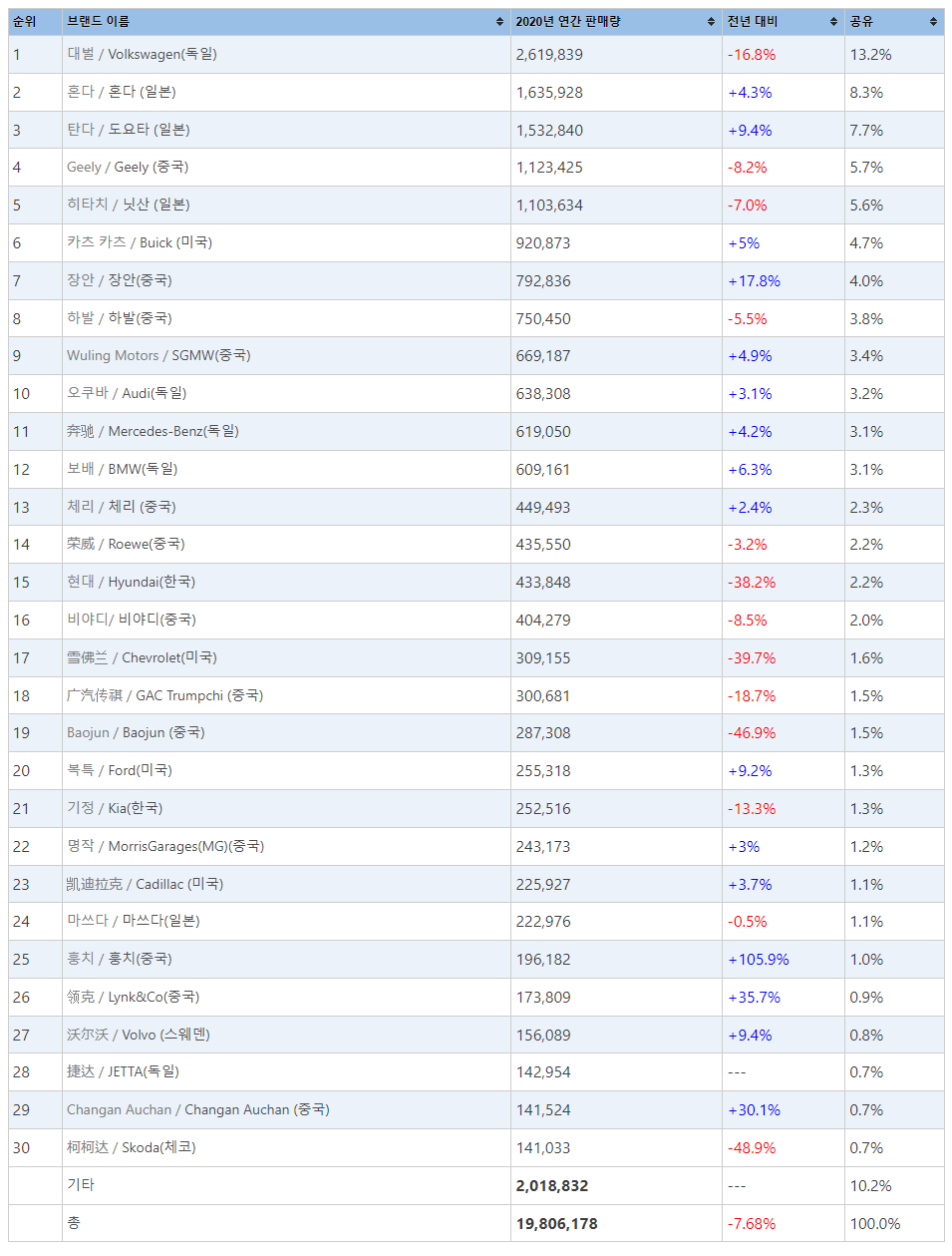 21년 미국 판매량 상위권 차종