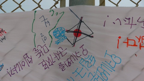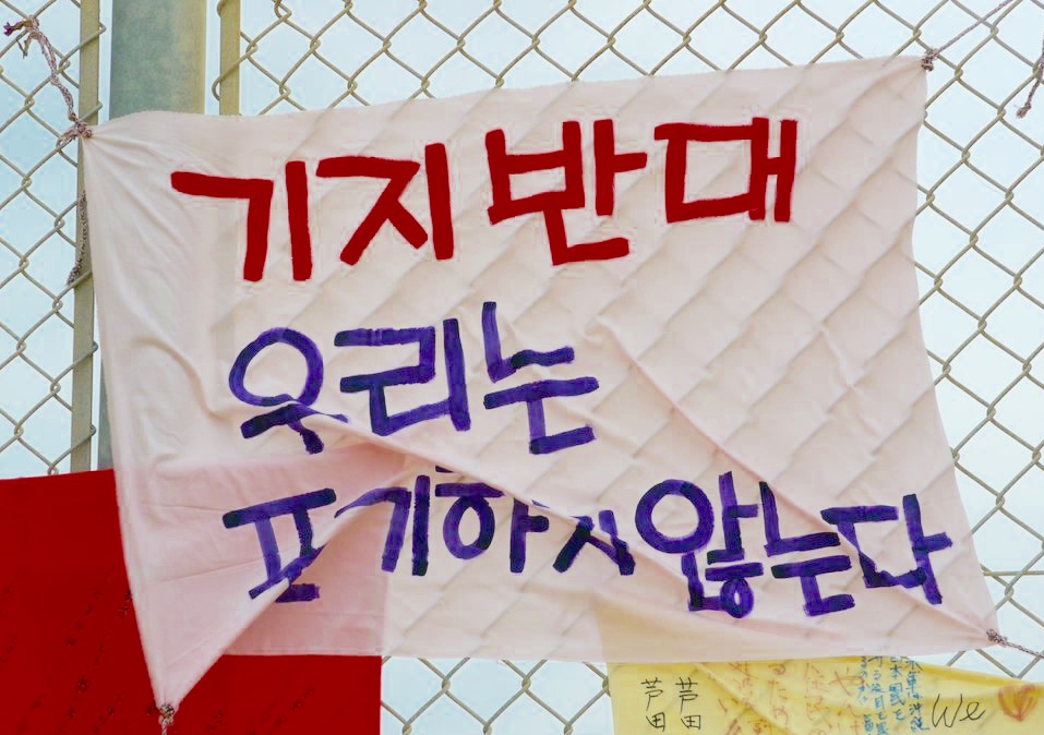 辺野古に掲げられたハングルの横断幕