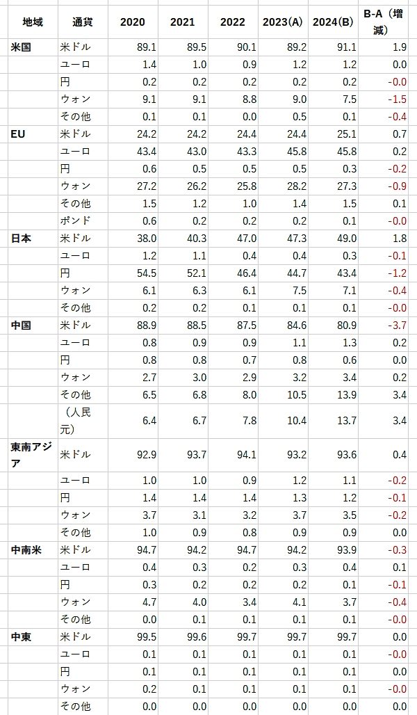 貿易の支払いがほとんど相手国通貨の韓国のヲンが基軸通貨ねぇ・・・