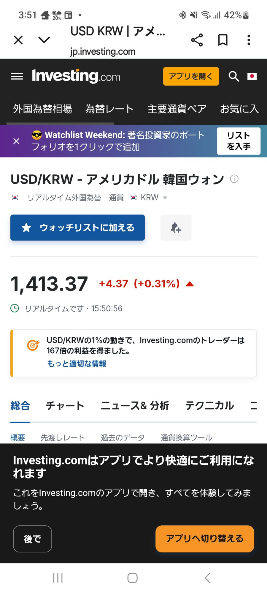 先週は、1420ウォンで取引終えたね🤣
