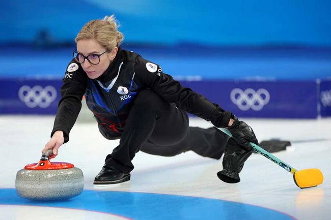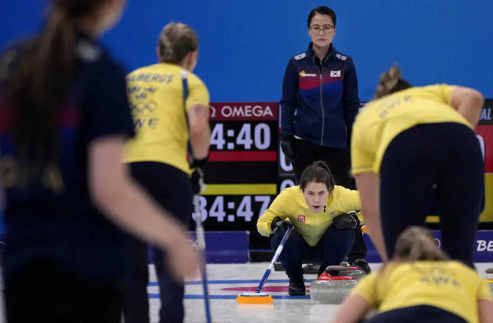 クォン·ヒョクジン記者=韓国女子カーリング代表チームのキム(江陵市庁)とデンマークの試合が行われた16日、北京ナショナルアクアティックセンター。