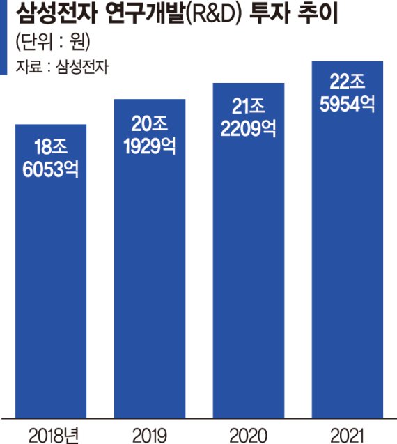 20일 삼성전자가 공시한 연결감사보고서에 따르면 2021년 R&D 총지출액은 22조5954억원으로 집계됐다. 1년 전(21조2209억원)보다 6.4% 증가한 것이다.