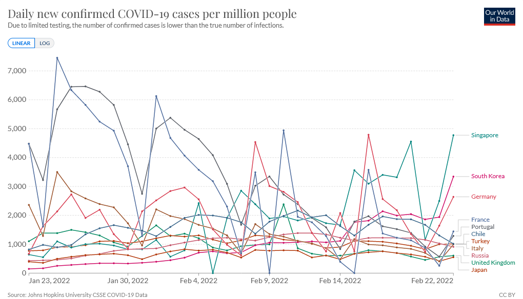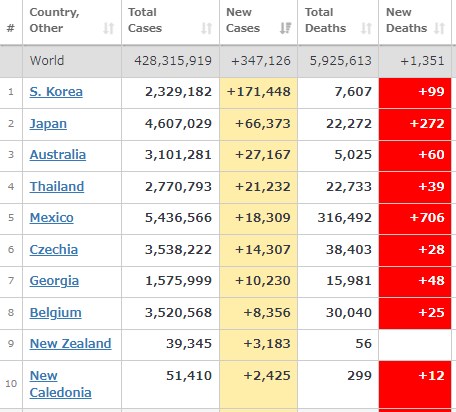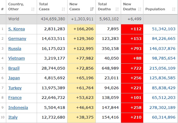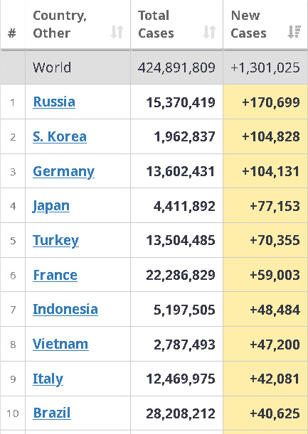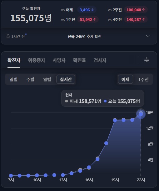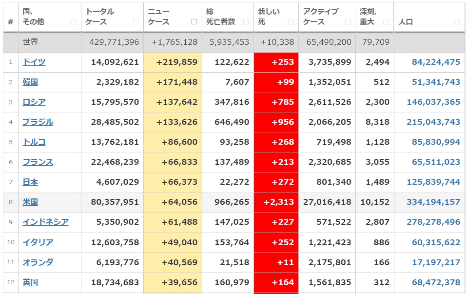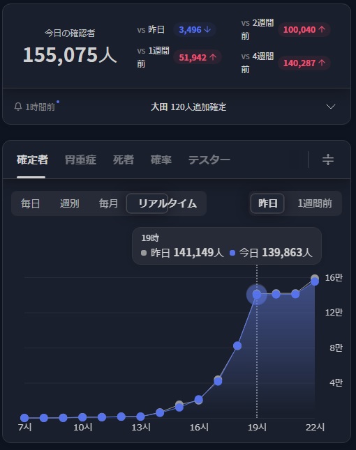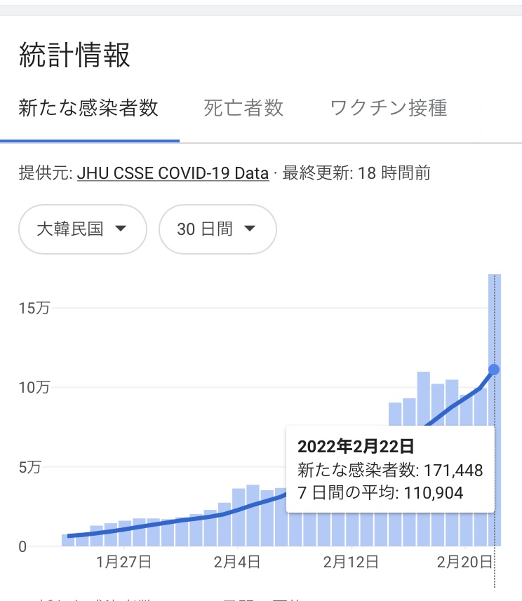 日本みたいに感染者数を誤魔化してないから、韓国のはリアルな数字なんだね。明日には一日の感染者が20万人を超えるかな