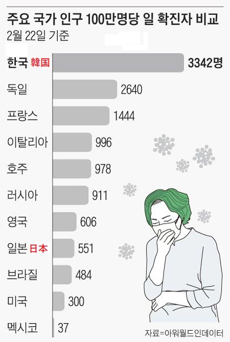 【K-防疫】1日の感染者数、韓国が世界2位!