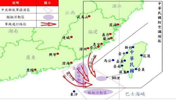 台湾が実効支配する南シナ海の東沙諸島(プラタス諸島)の北東の空域を飛行したという。