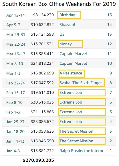 因みに、韓国映画で「パラサイト」に次ぐ売上を上げているのは、