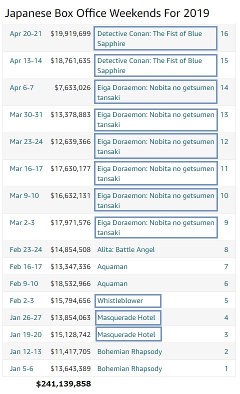 2019 名探偵コナン 紺青の拳 $115,570,314