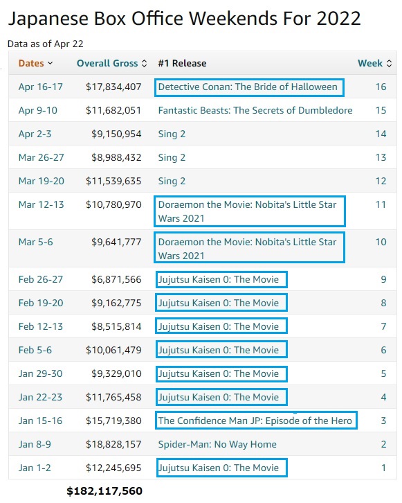 24)『名探偵コナン:緋色のアリバイ』1031万$(日本のみ)