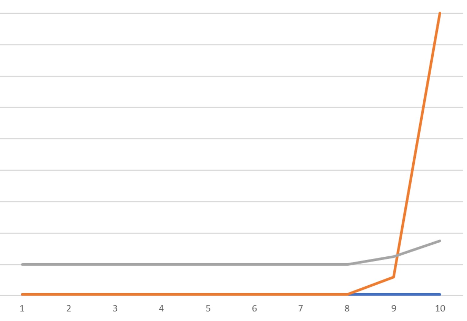 9名以降、赤い線は、急激に「大金持ち」になり、灰色の線は、そこそこ金持ちになる。