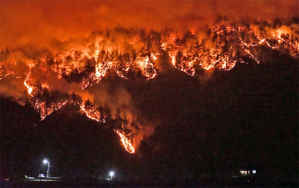 韓国東部の大規模山火事 原発やLNGプラントに火の手迫る