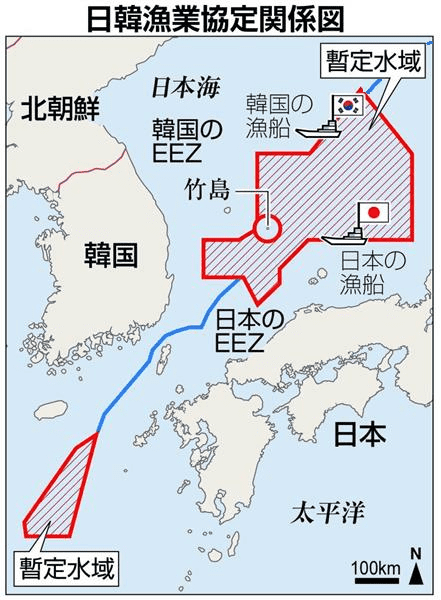 韓国のEEZではなく越境して旧日韓漁業協定の暫定水域または大和堆で漁をする