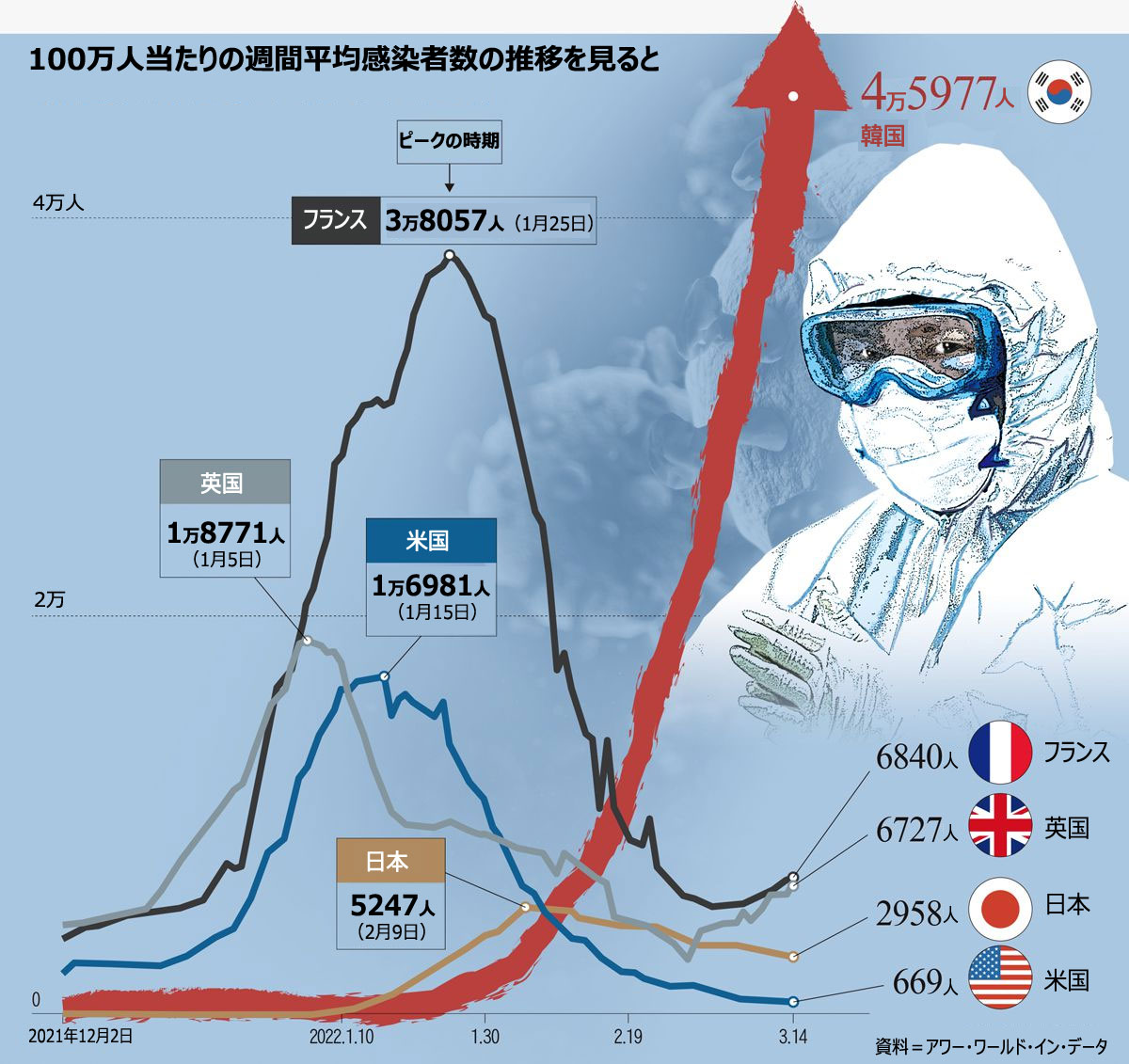 K-日本をのぞき見韓国の新規コロナ感染者 初の40万人超に