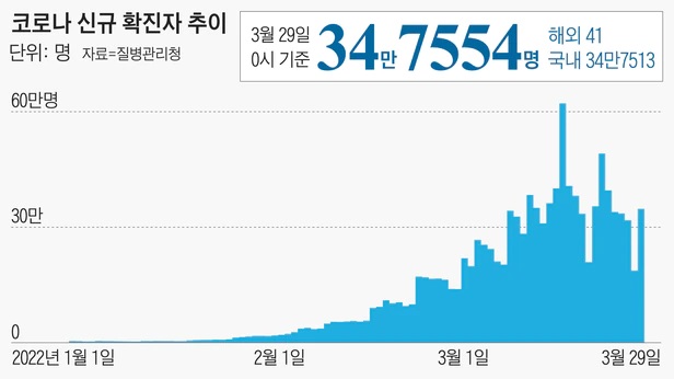 中央防疫対策本部は、29日0時基準で新規コロナの確定者が計34万7554人発生したと明らかにした。