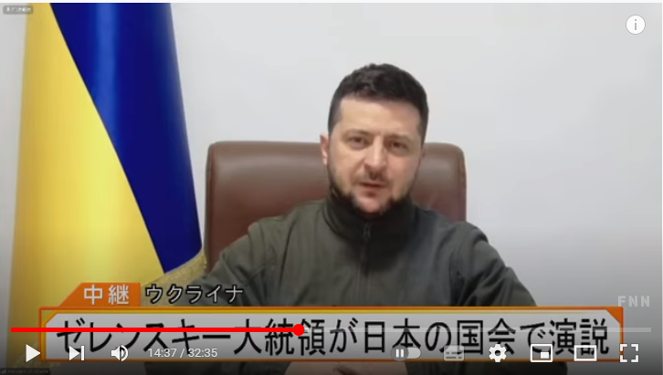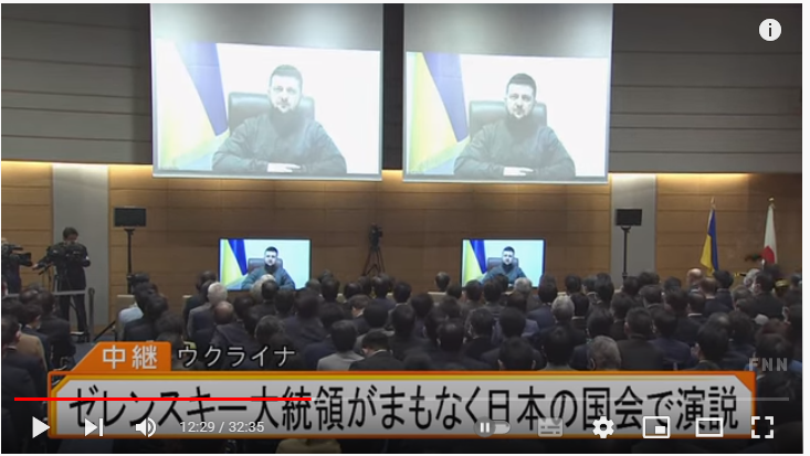 【速報】ゼレンスキー大統領が日本の国会で演説「アジアで初めてロシアに対する圧力をかけ始めたのが日本。