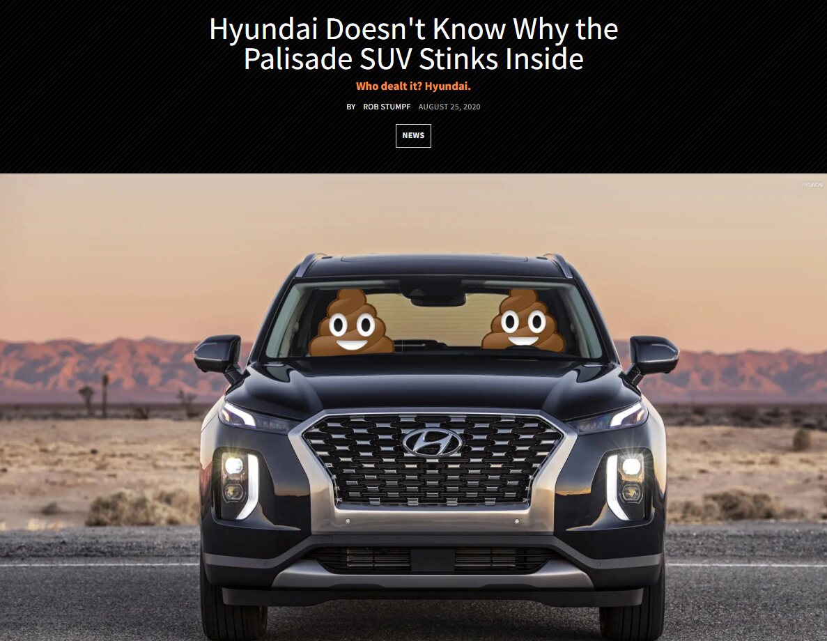 https://www.thedrive.com/news/36002/hyundai-doesnt-know-why-the-palisade-suv-stinks-insideそういう欠陥を改良もせず商品化する