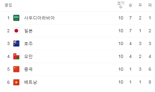 終了ホイッスルまでゴールを決められなかった韓国は、最終予選の最終戦で初めて黒星を喫し、7勝1敗2分けで全日程を終えた。勝ち点23の韓国は、レバノンに2-0で完勝したイラン(8勝1敗1分け、勝ち点25)にA組トップを明け渡し、2位に落ちた。