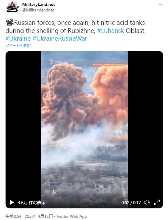 人口1億4600万人なので、直ぐにどうと言う事では無いが衰退は早まるだろう【ロシア軍は、ルビージュネの砲撃中に再び硝酸タンクを攻撃しました。】動画
